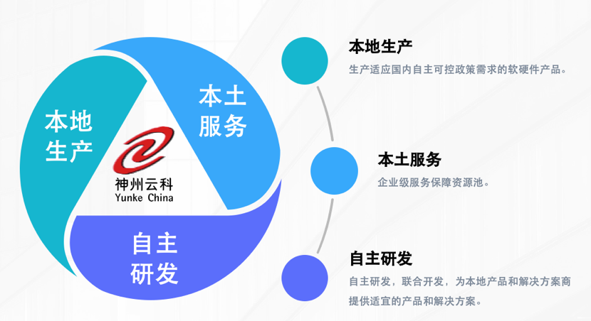 紧跟国家自主可控战略,大满贯PG通过“本地生产、本土服务、自主研发”的战略路径,打造自主品牌、生产自主产品,为合作伙伴提供神州数码自主品牌、自主知识产权的云基础设施产品、服务及解决方案。